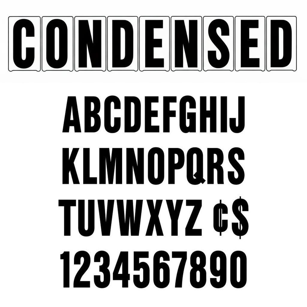 4" Pronto Condensed sign letters on 4-7/8" clear panels are rigid marquee sign letters used on reader boards, church signs, school signs, and other outdoor changeable-copy signs. This size is commonly referred to as 4" on 5".